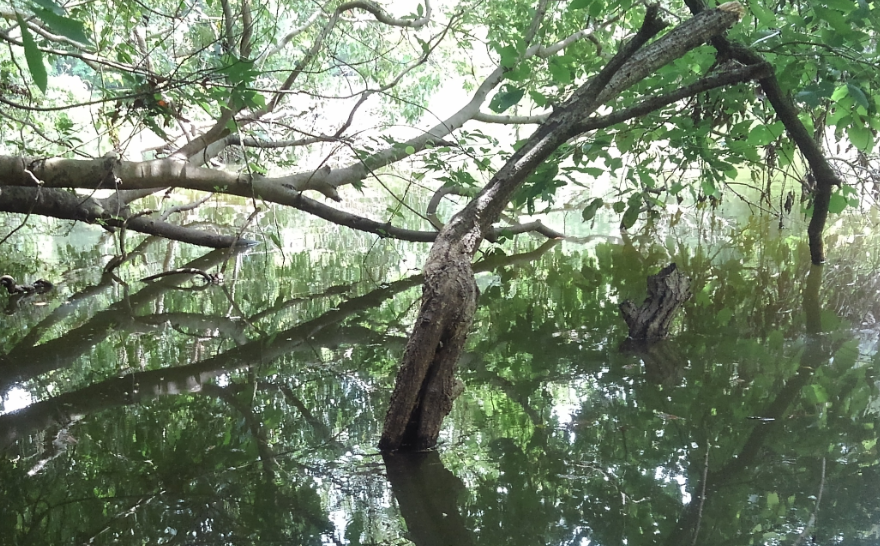 フローティングの小型ハードルアーなら、倒木の中で長時間浮いていることができます。