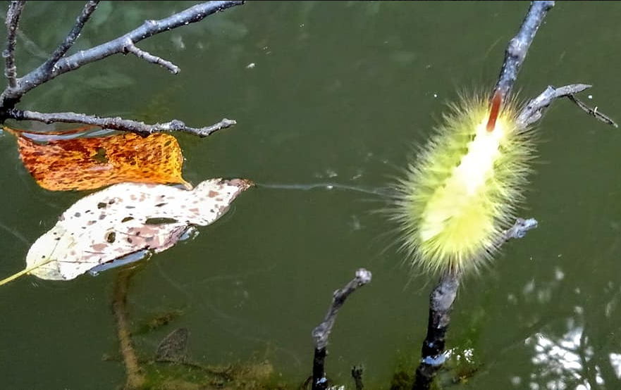 強めの風が吹くたびに、その数は増して・・・落葉と一緒に虫も水面を漂うように。