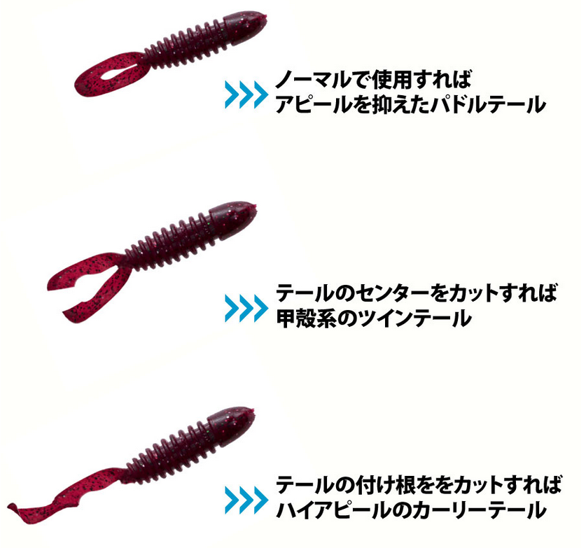 このワームの凄いところは、テールの真ん中でカットすると、ツインテールパドルに早変わりする点。
