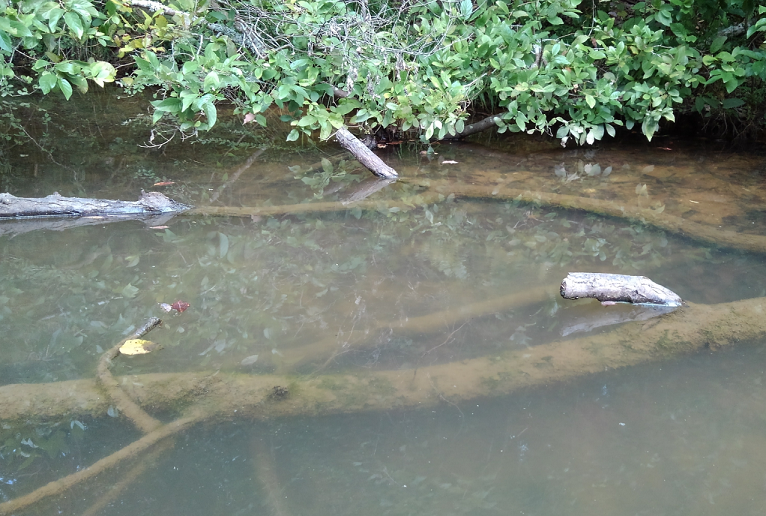 遠浅の岸際なら、倒木の先端に何が付いているのか、ヒントをくれる場合がありますよ。