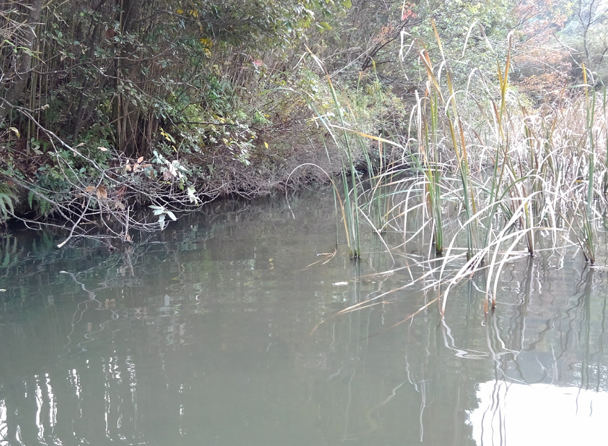 葦の密集エリアの水が澄んでいる!