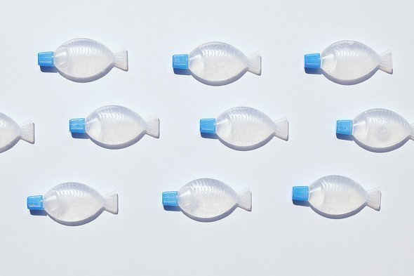 醤油の時の赤いキャップを外し、爽やかな青いキャップで登場した魚の醤油差し。