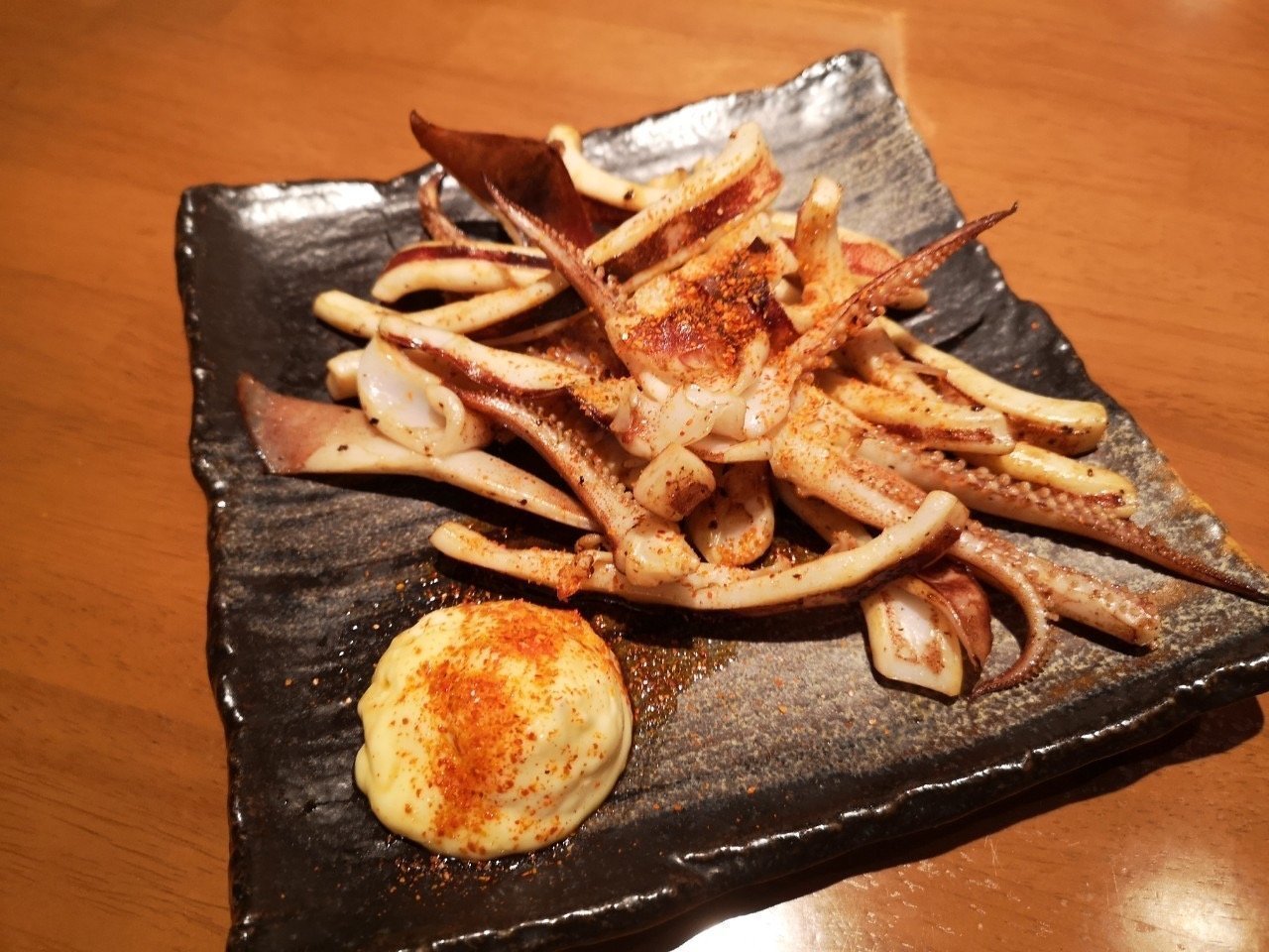 ゲソを七味マヨネーズにつけて食べれば、お箸が止まりません。