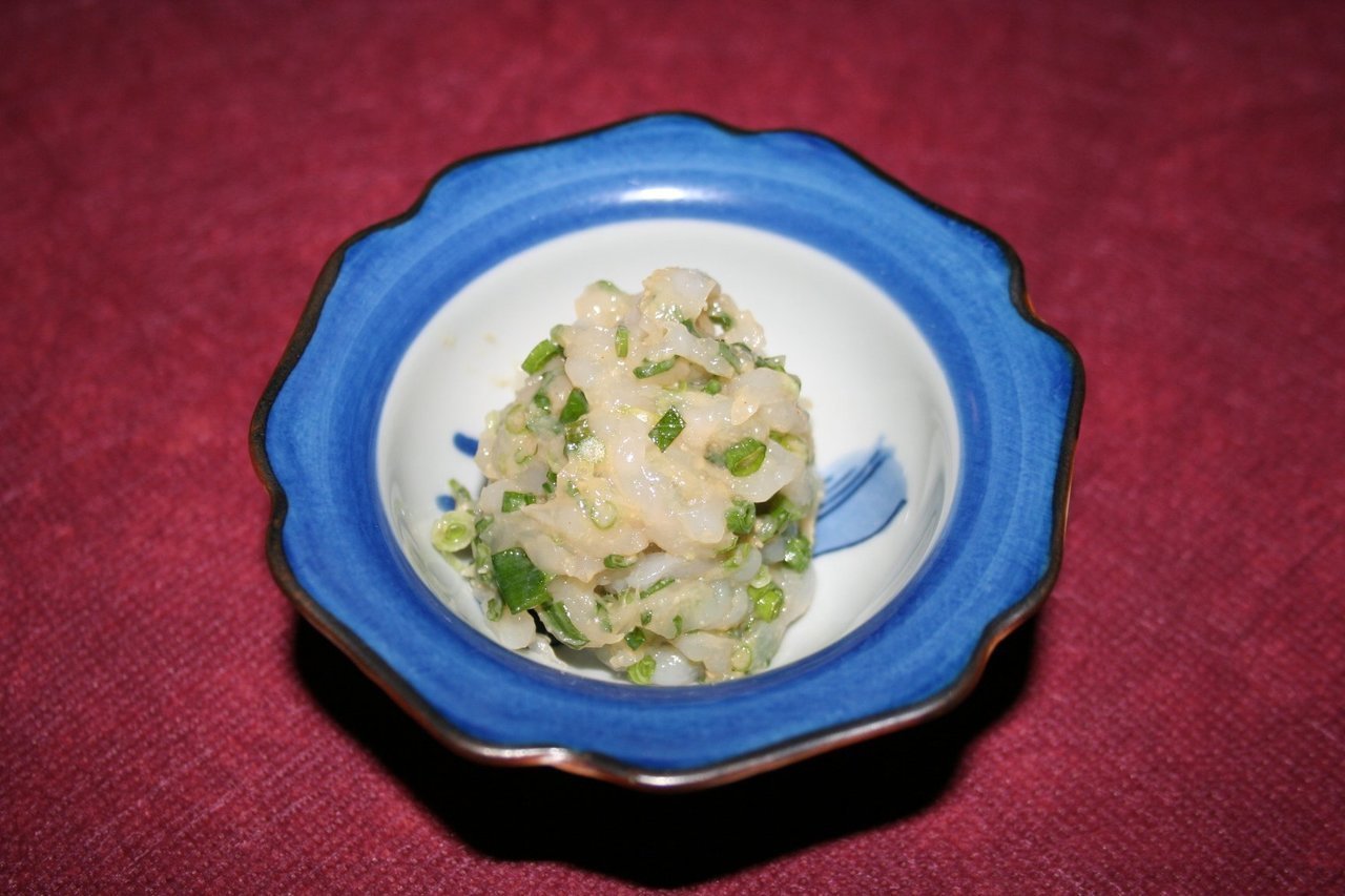 房総地方の郷土料理であるなめろうは、通常アジやイサギなどで調理しますが、ソフトなシロイカの肉でも、驚くほど美味しくできます。
