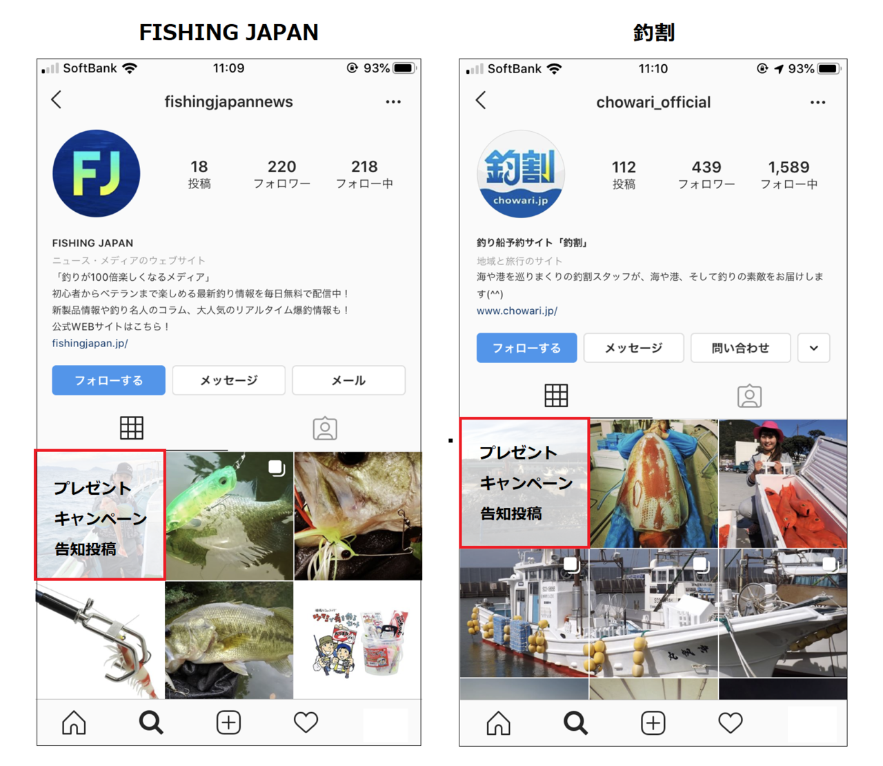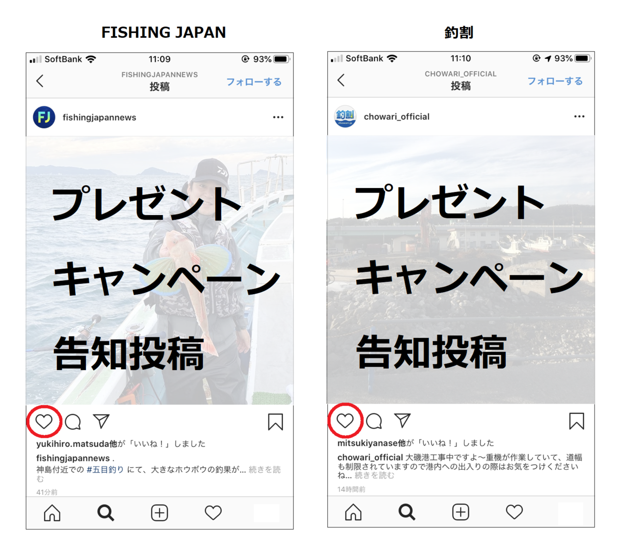 FISHING JAPANの公式Instagramからのご応募と釣割の公式Instagramからご応募いただくのとでは、プレゼント賞品が異なりますので、以下ご注意ください!