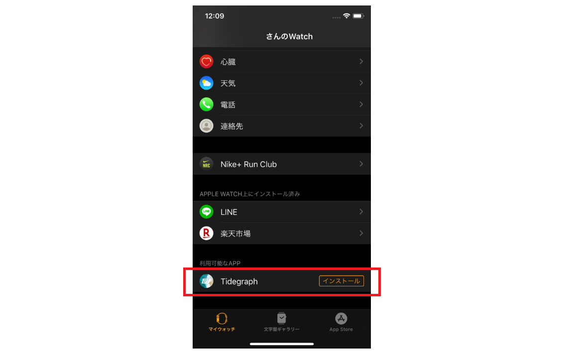 インストールボタンを押さえて、「Tidegraph」がWatchに設置されます。