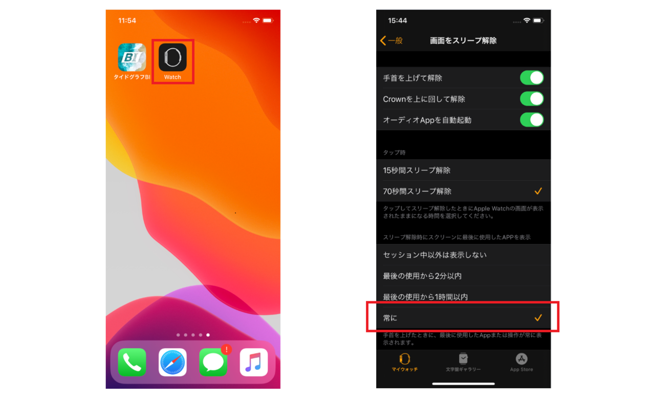 このように設定するだけで、Watchアプリを長時間使用していなくても、手首を上げればすぐに最後に使用したアプリが表示されるので便利です!