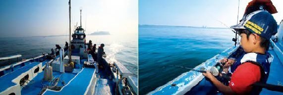 (左)釣り場は水深20m 前後の浅場が中心(右)タックルが軽いので子供も楽しめる
