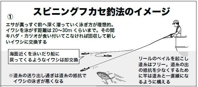 生きイワシを使った釣りには一本釣りとフカセ釣りの2種の釣法があるが、ここでは目下のイワシエサ船で主力となっている、人気急上昇の通称「スピニングフカセ」に話を絞って解説していこう。