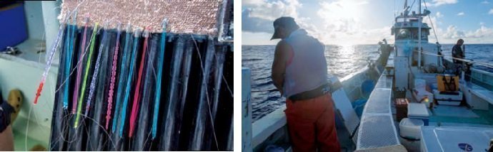 (左)ポイントは石廊崎のほぼ真南。水深は240m前後(右)親父船も張り切って操業中