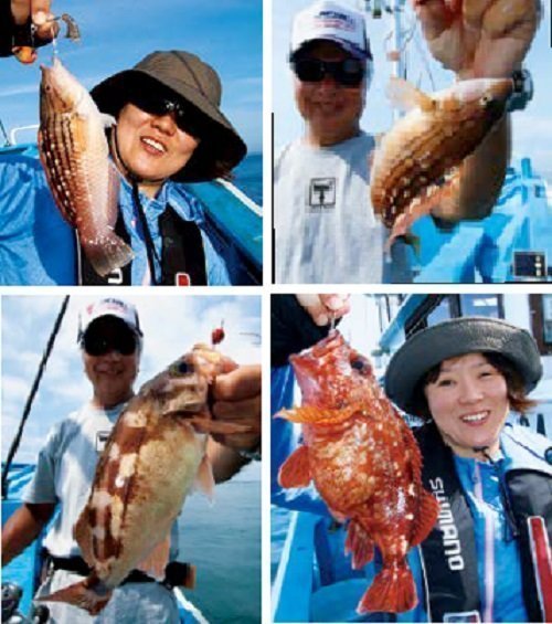 大久保さんはカサゴ、オキメバルと根魚を連釣し、宮本さんもオキメバルを掛ける。