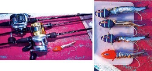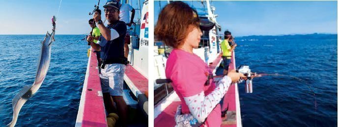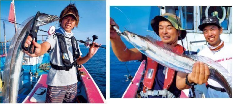 (右)東京湾と違いテンヤで面白いようにアタリが出る。タチウオがスレていないのは明らかだった(左)先調子の硬い竿ほど1.7mなど短めが使いやすい