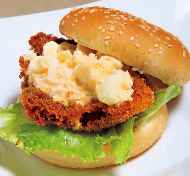 バンズにレタスやキャベツを乗せ、揚げたキンメダイとタルタルソースをかければキンメダイバーガーの完成です。