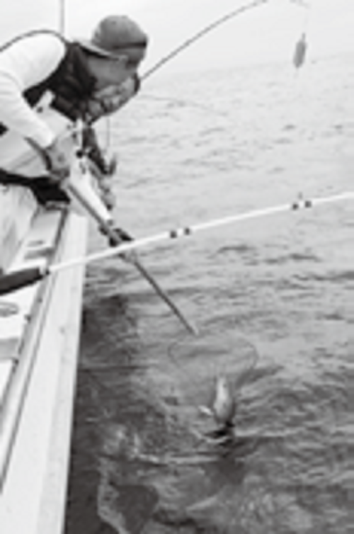 魚が見えたらしっかり船に寄せ、タモ取りしてもらおう。
