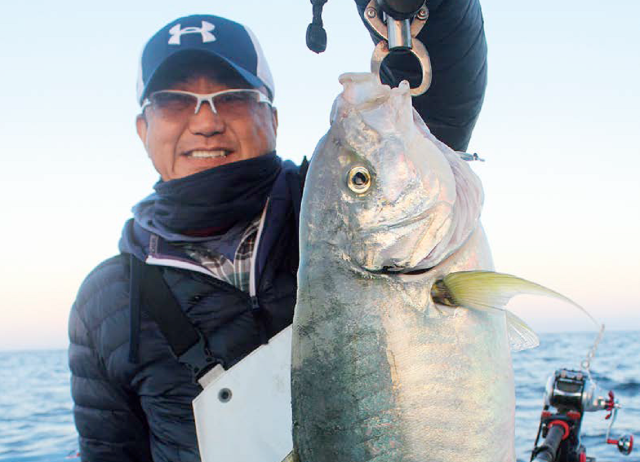 取材した伊戸港の保坂丸では、例年この時期はコマセダイがメインなのだが、今年は海水温が高めに推移している影響か、シマアジが依然好調。