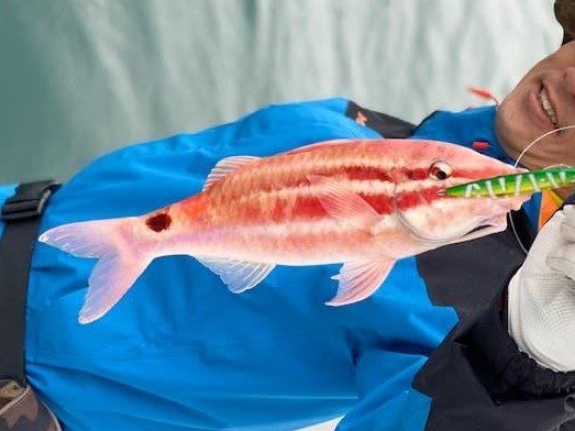 ある年の7月半ば、和歌山県の切目崎沖へひとつテンヤの釣りに出かけたとき、仲間がオキナヒメジ(地元ではメンドリと呼んでいます)を釣りました。
