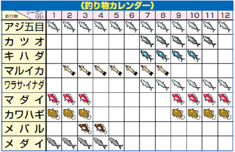 一番人気は周年楽しめるマダイ五目で、主な釣り場は剣崎~久里浜沖。