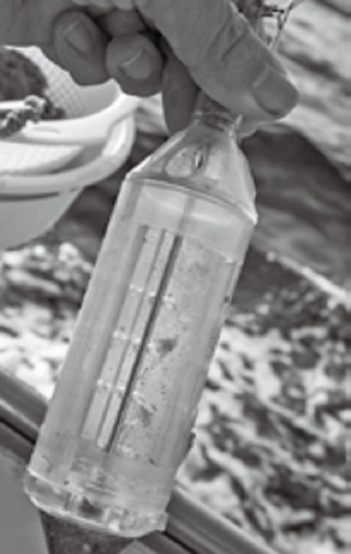 ところがウイリーの場合は、仕掛けが着底したら少しずつコマセを出しながら上へ上へと誘い上げていく。
