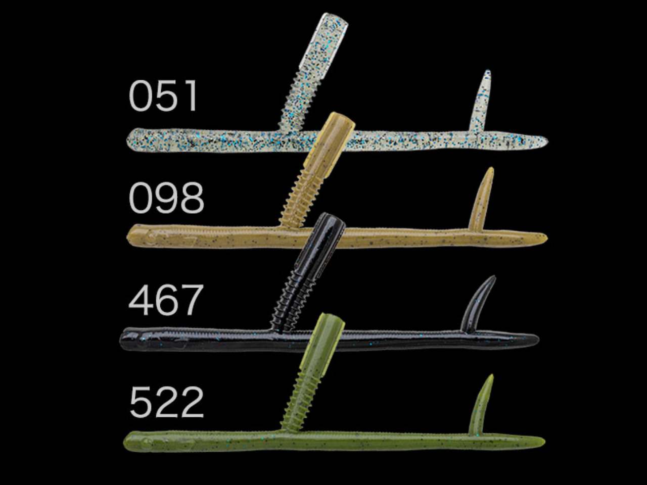 また、ストレートリトリーブではボディ全体を震わせてバスにアピールするので、一般的なストレートワームと同様のリグで使用した際にもハイパフォーマンスを発揮します。