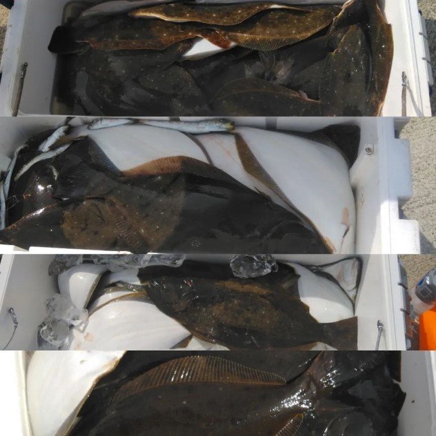 ・イワシ五目釣りで出船し、ヒラメ最大83cm、竿頭25枚、船中120枚でした。