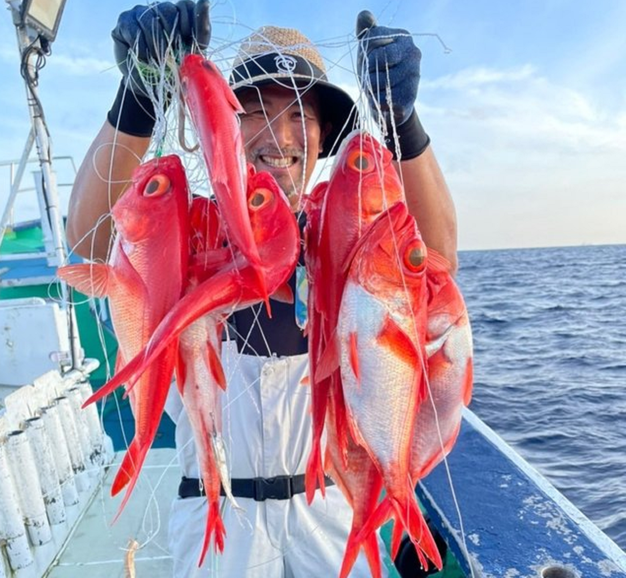 新島沖GOLDキンメ、朝の内は全員当たりあり大型中心に釣れて良かったですね。