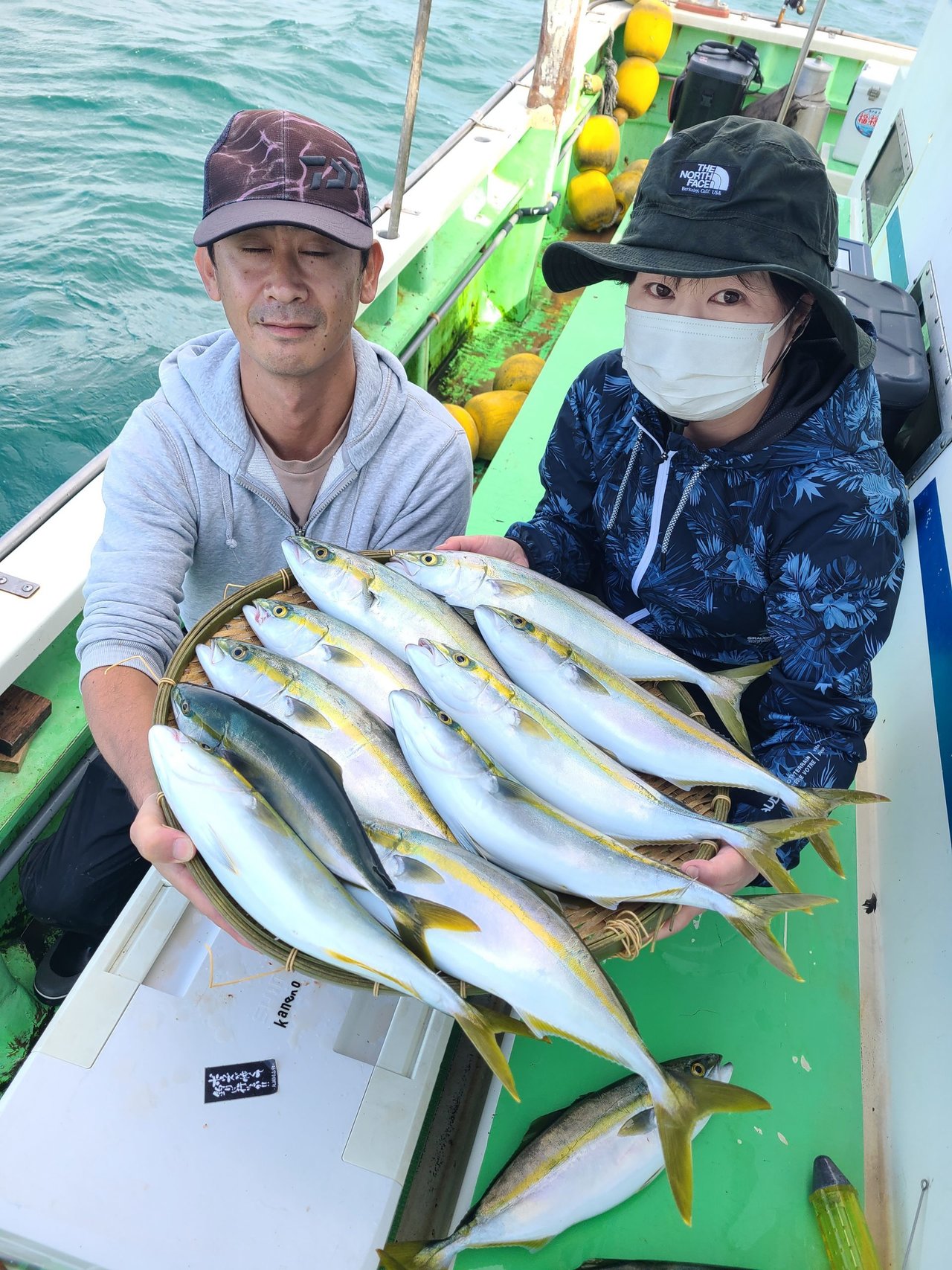 ・台風の時化後、朝は落とし込みをメインでやりましたがエサの付きが悪く苦戦でした。エサが付けばカンパチや型のいいイナダ混じりましたが、お土産にするには物足りないアタリでした。