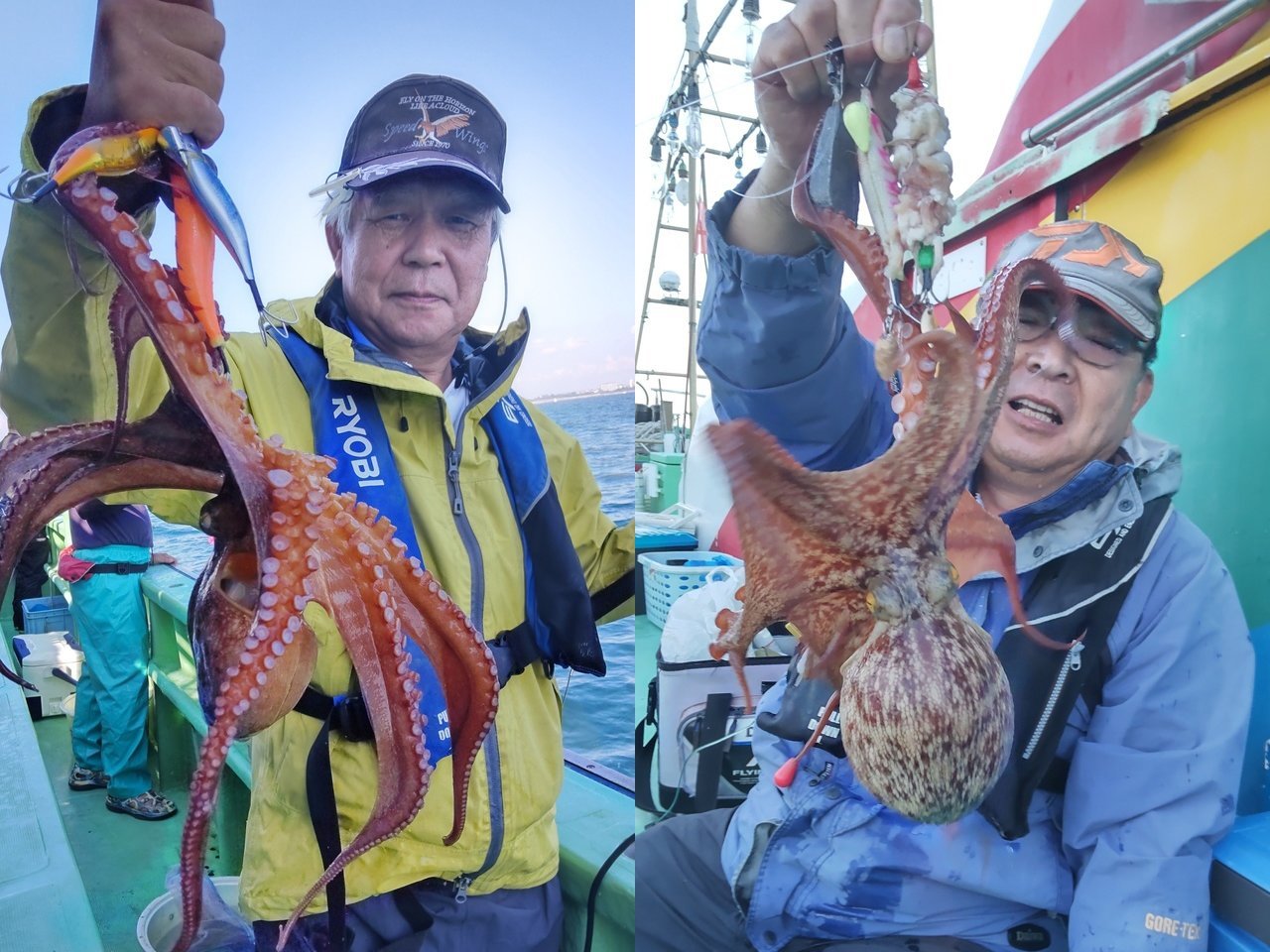【釣果速報】茨城県仙昇丸でマダコ順調に上がる!全員10匹以上ゲット!キロオーバーの良型も交じり好調!
