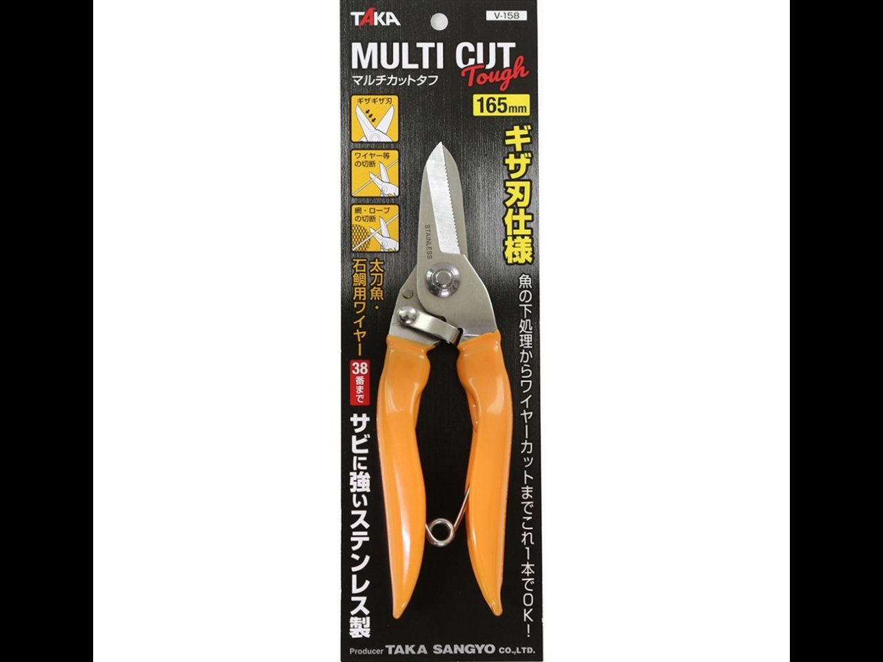 マルチカットタフは、網・ロープの切断から魚の下処理までこれ一本で対応できるハサミです。