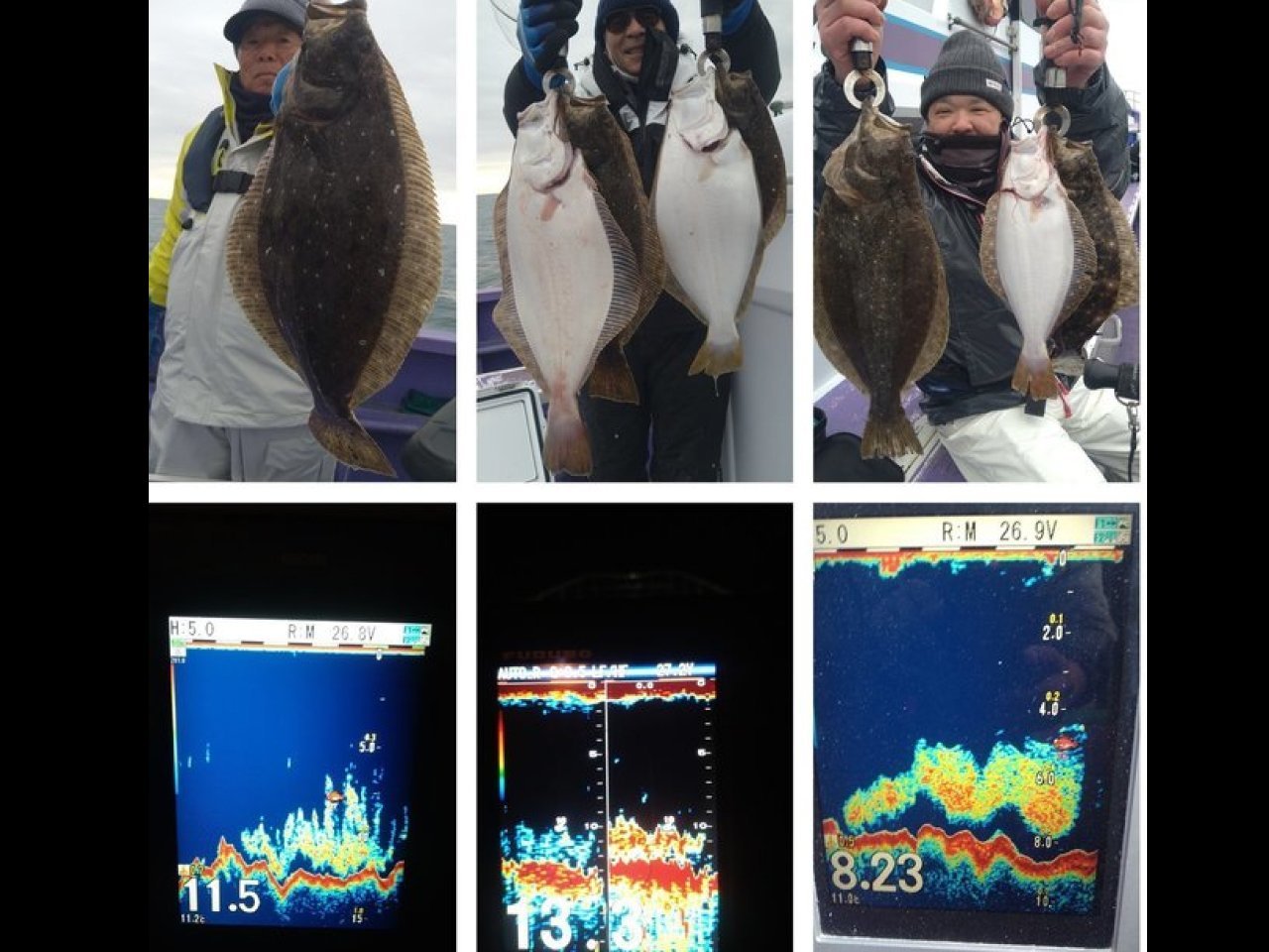 ・その後もサイズup目指してポイント転々とし、良いとこ入れば同時ヒットや連チャンヒットありで型でてくれ、皆様複数枚ずつGETやサイズUPの方達もいて、好調継続!大鮃GETの情報も連日あり、明日は暖かく穏やかな予報の様子です。