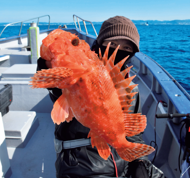 賑やかな春の釣り物に埋もれがちな魚をコツコツ発掘すると、朱色に輝く根魚・オニカサゴが現れる。