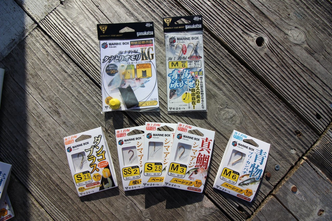 ちなみに、鈎はがまかつ・MARINEBOXシリーズの「真鯛・シマアジベーシックM3号」。