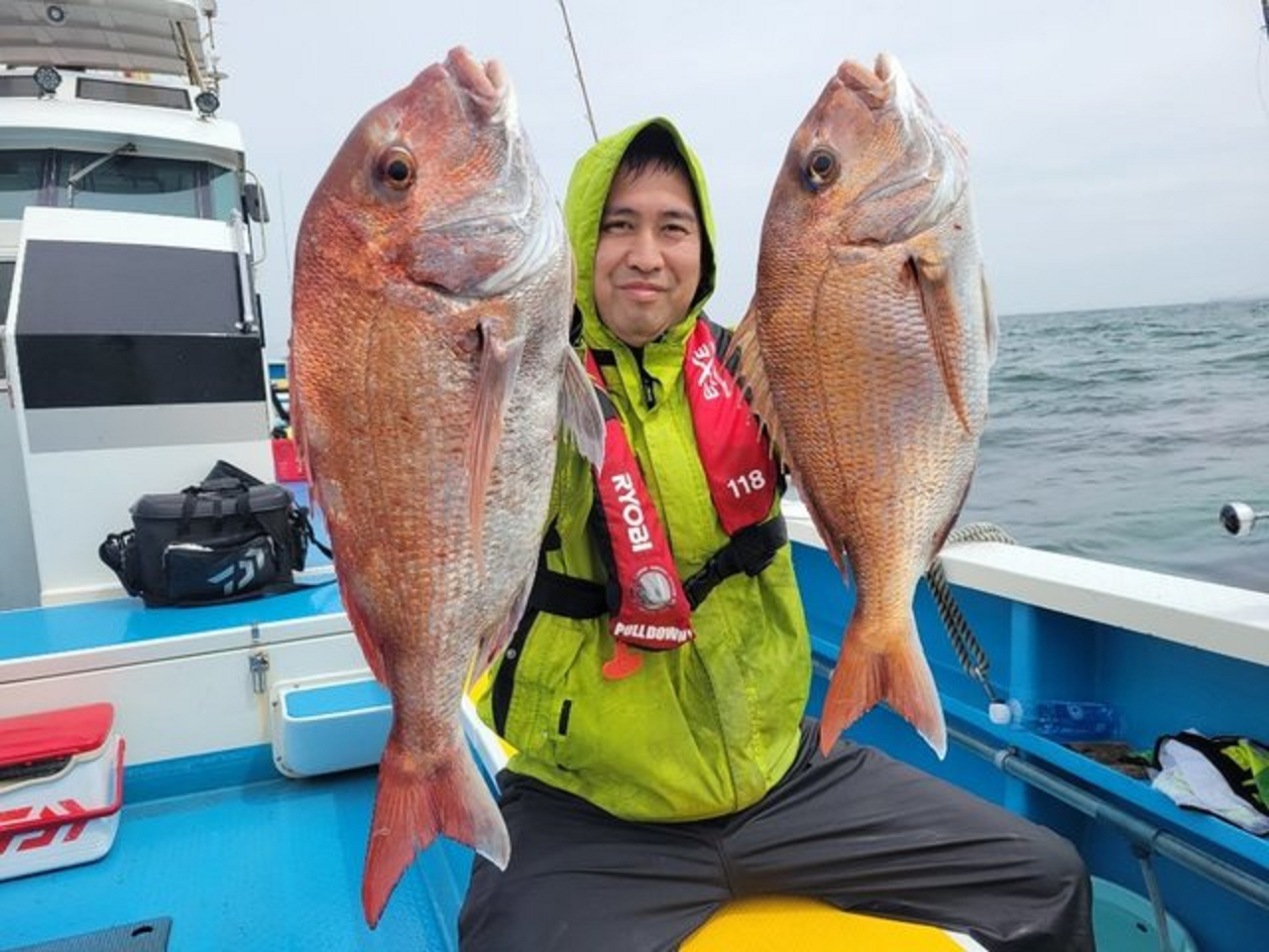 ・マダイ絶好調でした。少し風が強く船酔いの方がでましたが、1日釣りをすることが出来ました。