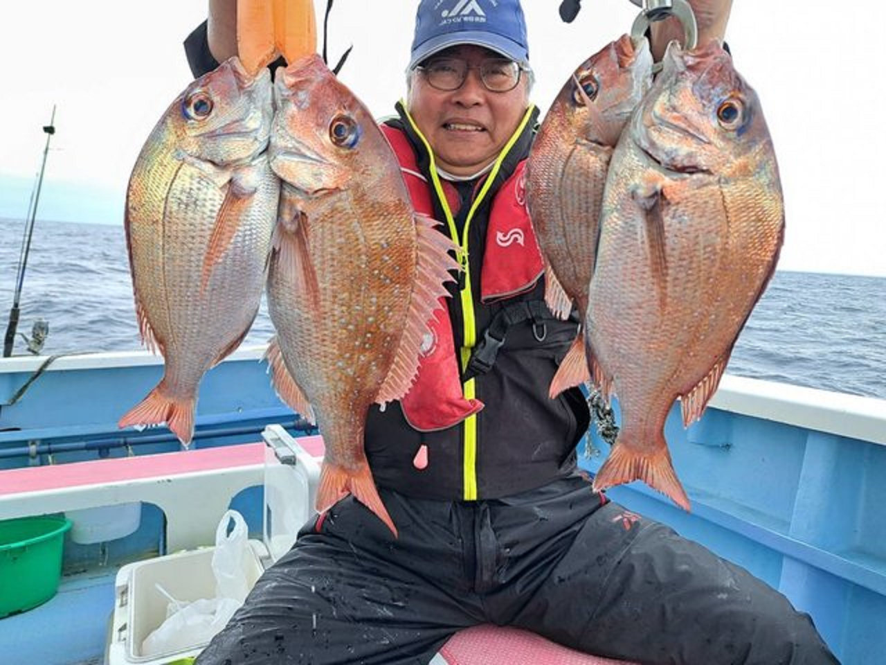 ・<マダイ船> 一つテンヤでのマダイ釣りです。