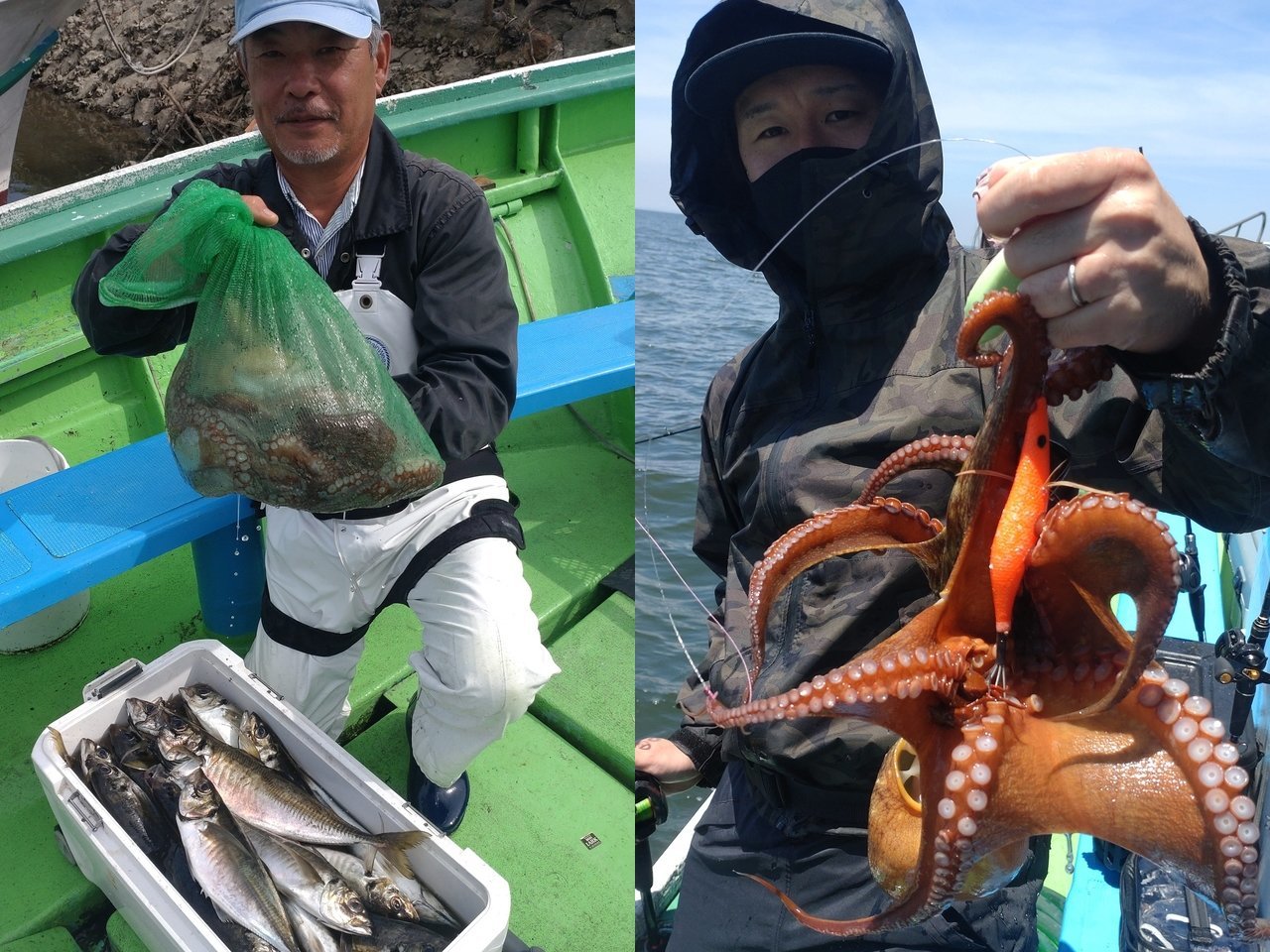 ・アジ・タコリレー乗合で 前半9時半までアジで、しばらくしてから喰い始めて、その後ポツポツと喰い続きました。