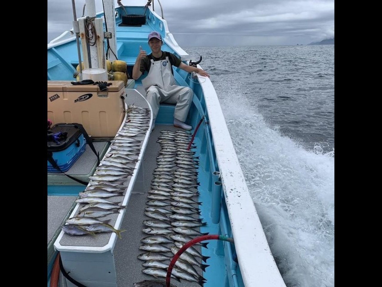 ・地イサキに出船しました。絶好調の地イサキ!!食い食いモードでクーラー満タン 早上がり!!スーパー高校生はトップ60匹と数釣りを楽しんでいました。