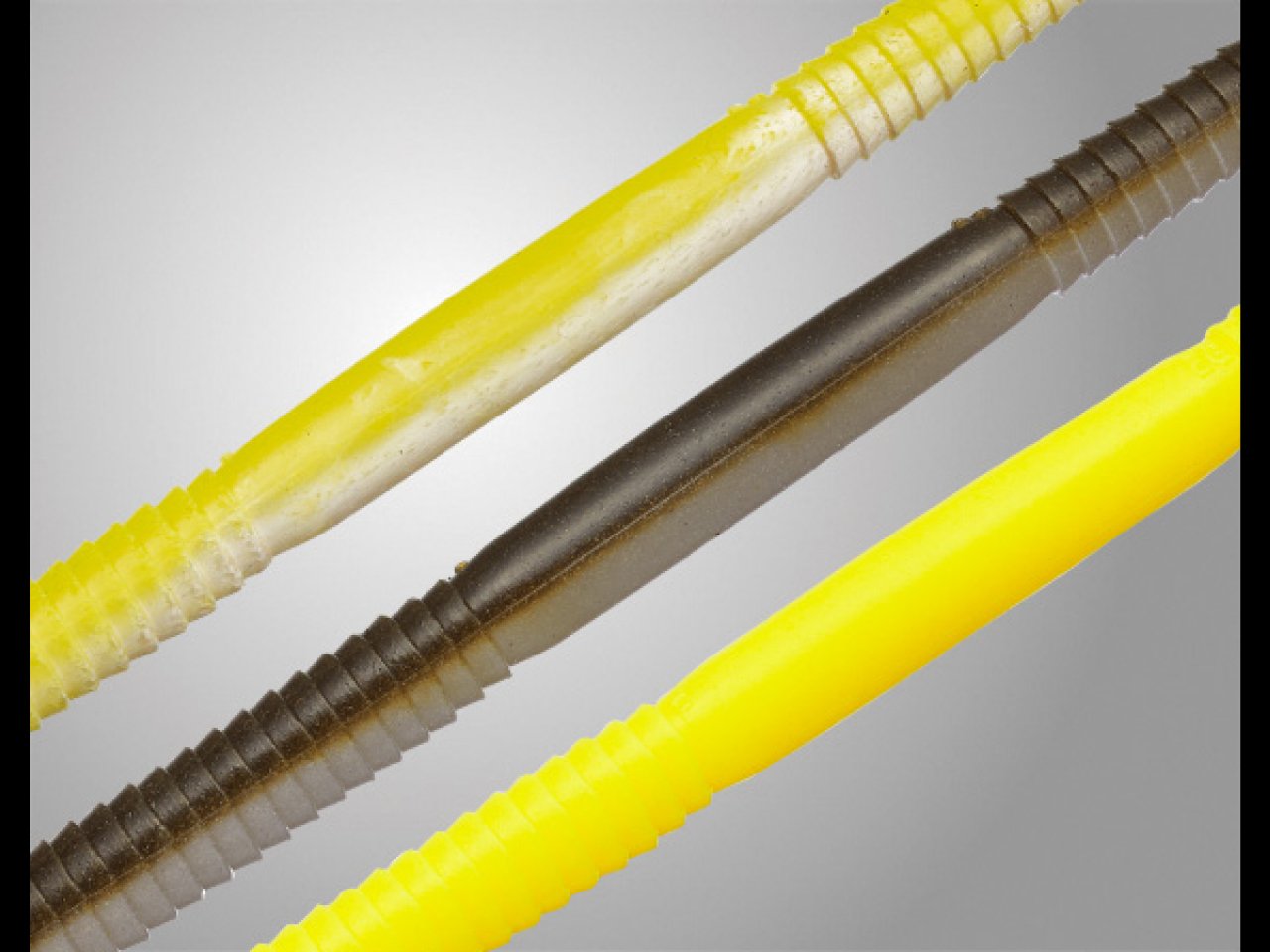 前後逆リブ構造が水を掴み動かすランカーキラーのストレートワームです。