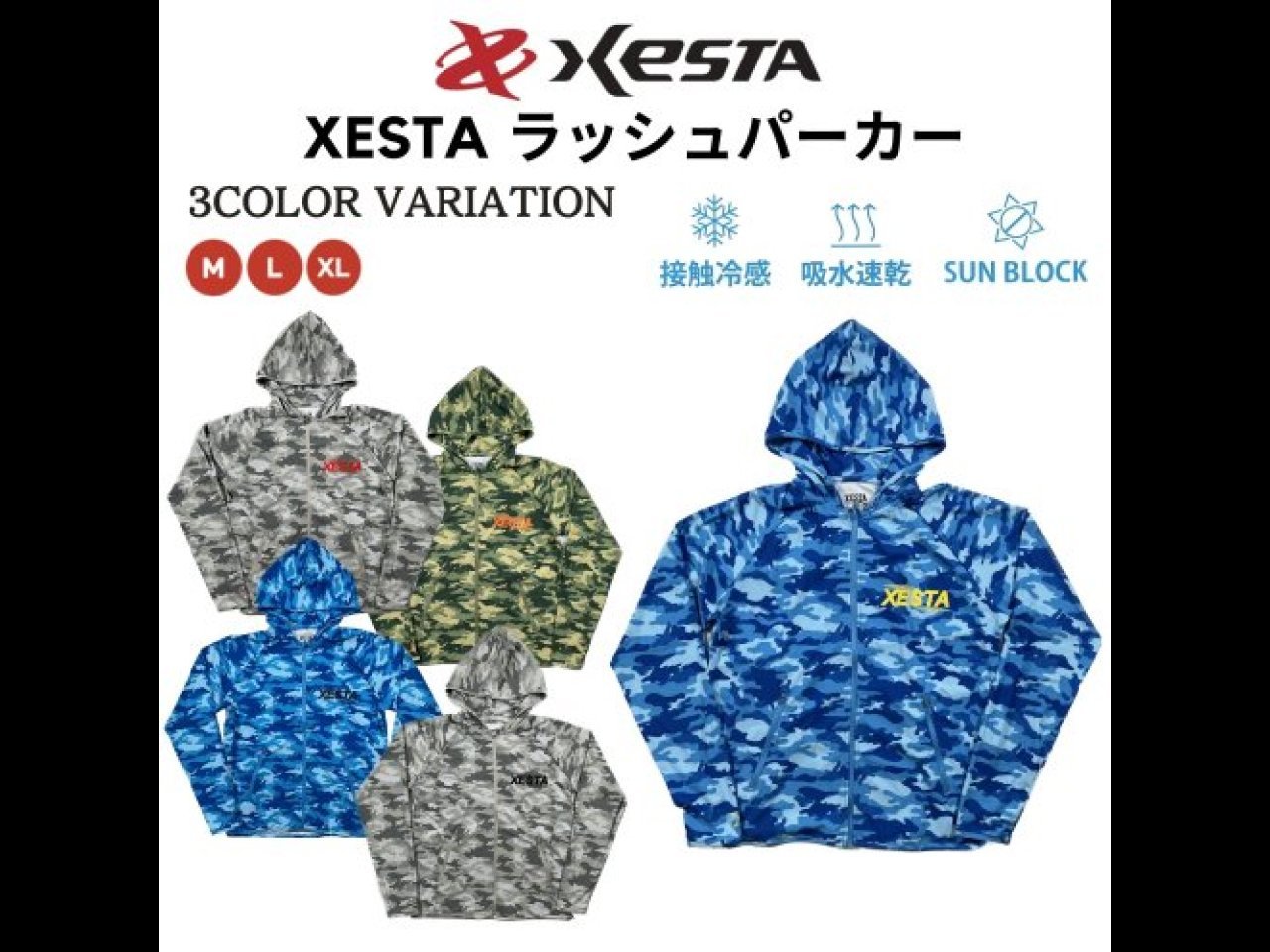| M/L/XL | グリーンカモ、ブルーカモ、グレーカモ、ブルーカモ×ネイビー、グレーカモ×ブラック | 8,800円(税込) |