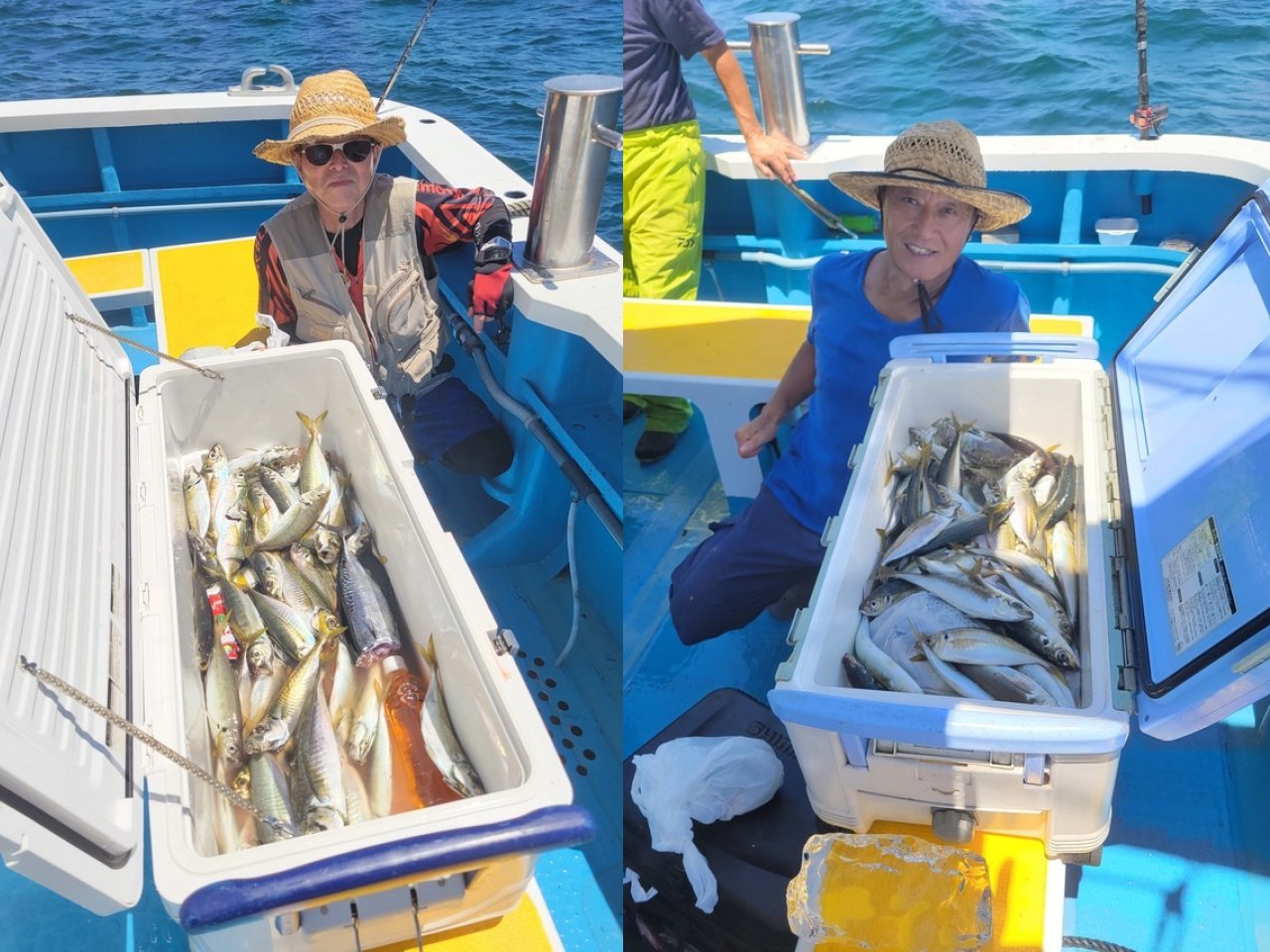 ・マアジ船:終日潮の流れ緩く、朝イチからポツポツと中アジ主体で当たりがありました!潮変わりの時間帯にはジャンボアジも混じり皆さんお土産バッチリでした!
