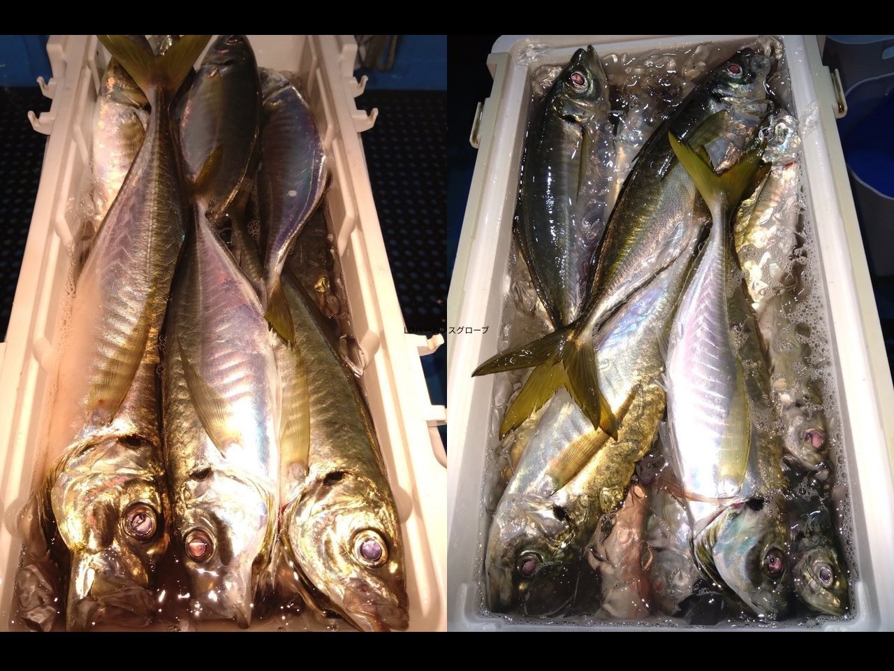 ・夜便コマセアジでした。開始から順調に釣れてくれました!後半はペースダウンで型も小さくなってしまいましたが、最後までアタリありました。