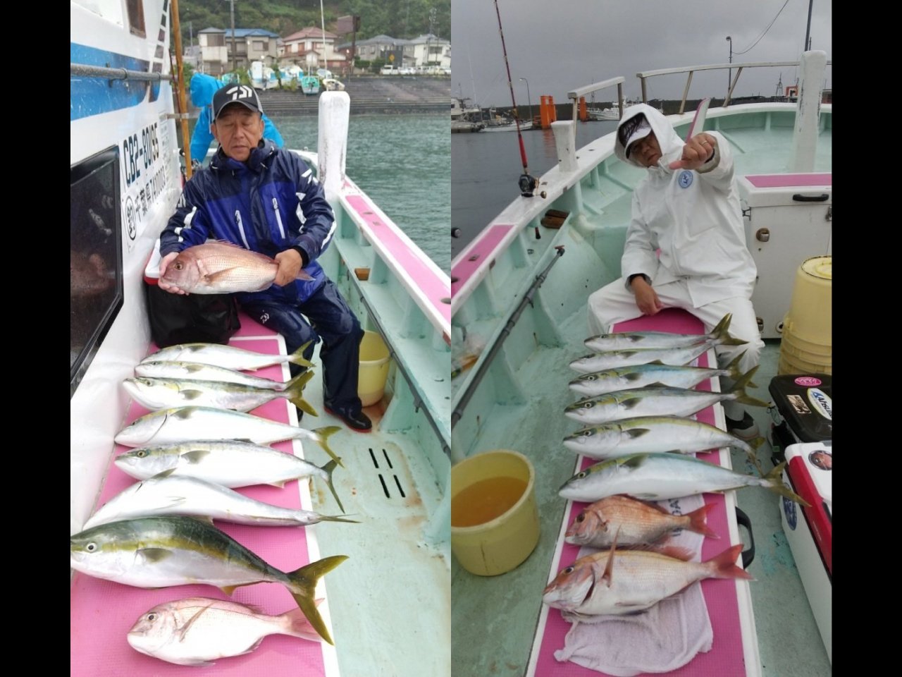 ・ワラサ&マダイ船。朝一番からバリバリの絶好調!雨風強くなり10時30分の早上がりでした。