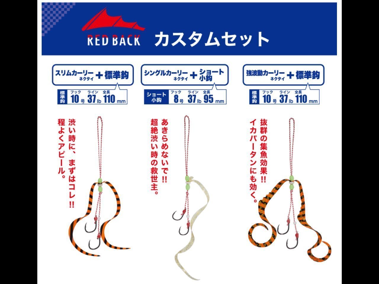| 〈強波動カーリー+標準鈎〉 | 2セット | 全6色 | 750円(税込825円) |