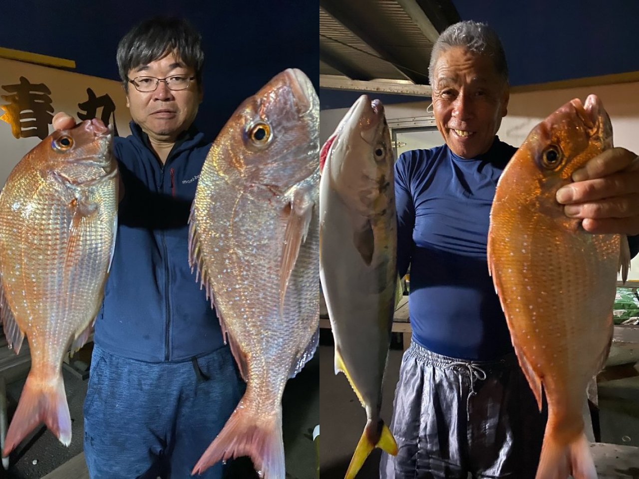 ・テンヤ真鯛午後船。釣果1~12匹、サイズ0.3~2.1kg。