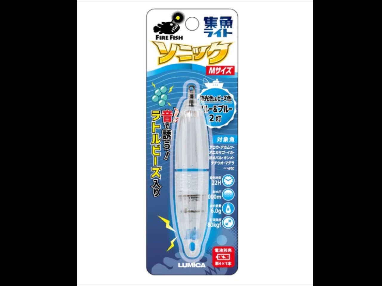 | 内容物 | 水中集魚ライト ソニック(Mサイズ)×1個 |