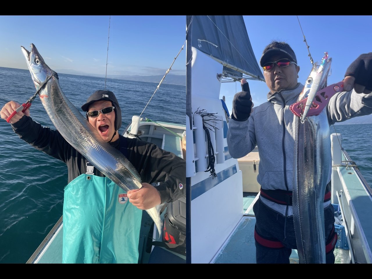 ・タチウオ→ティップランリレー仕立て船。最近好調のタチウオからスタート。朝一は反応の割に喰い悪く焦りましたが、その後は順調に!2時間程で皆さんお土産確保できました!
