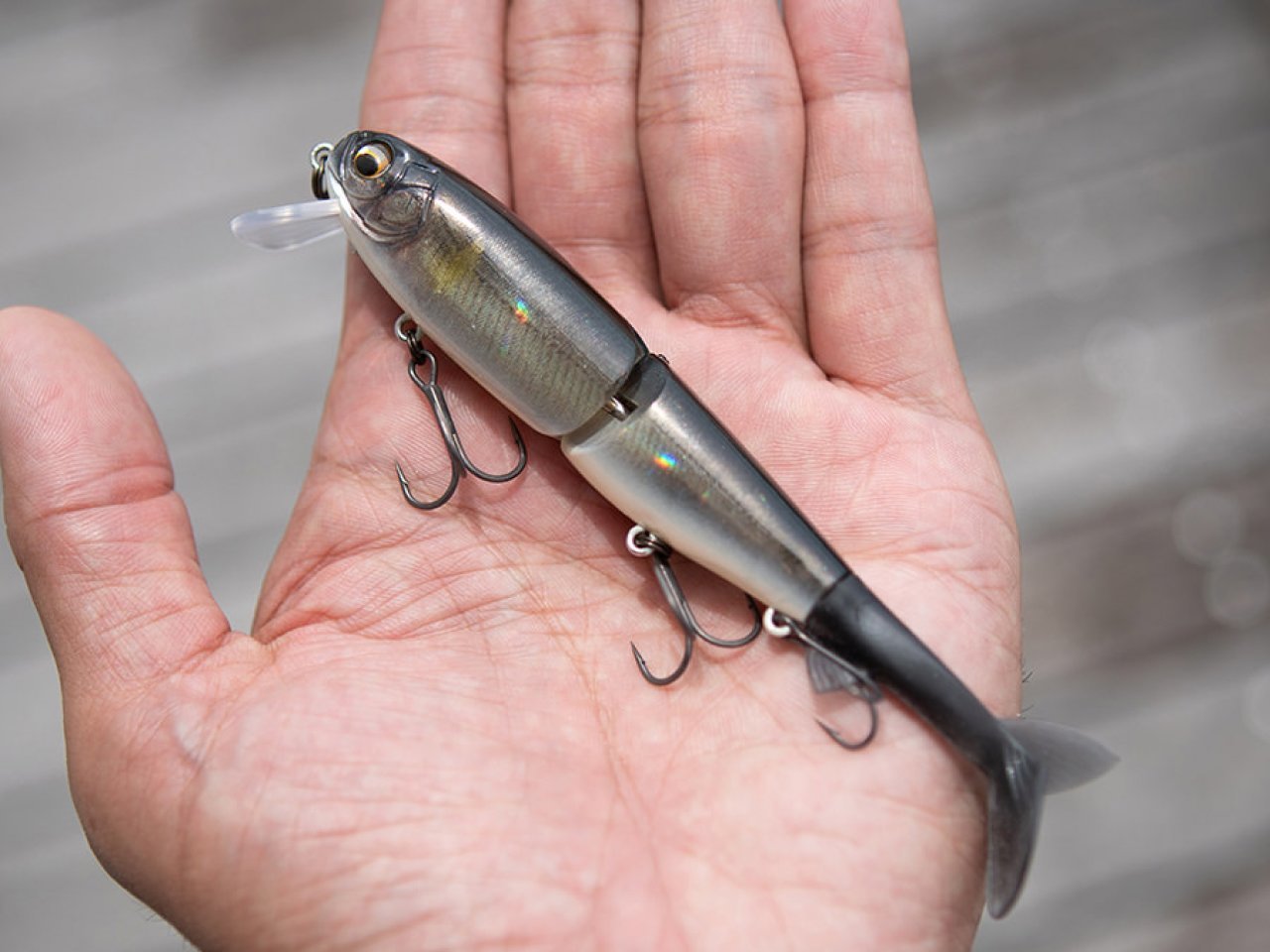 シングル大型ジョイント&エラストマーシャッドテールをそのまま継承することで、ウェイクベイトとしての水面攪拌アピール力は健在。