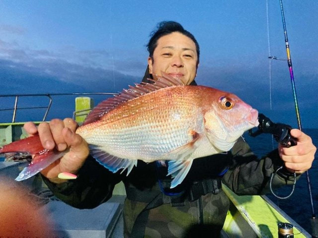 ・1つテンヤマダイ。活きエビ餌。海穏やかで釣りやすくマダイの喰い気も上々でした!反応も良いので今後も楽しめそうです。