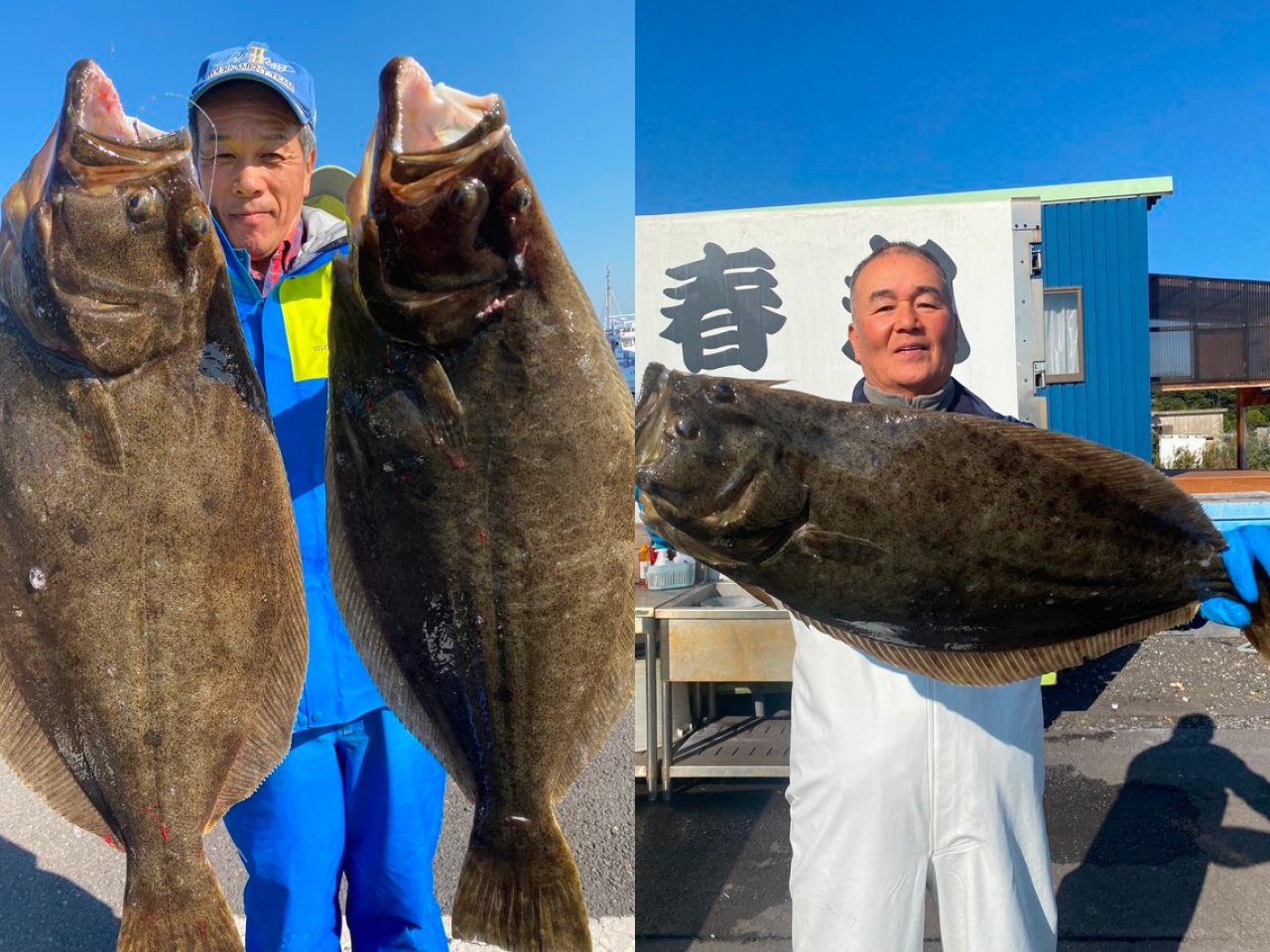 ・ヒラメ船出船。釣果1~5匹。サイズ0.5~3.2kg。