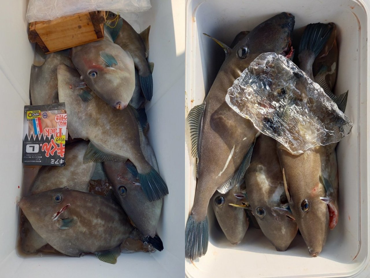 ・ハゲ便。朝イチからハゲの活性高く、10時までの2時間で多い方で16枚釣られてました。