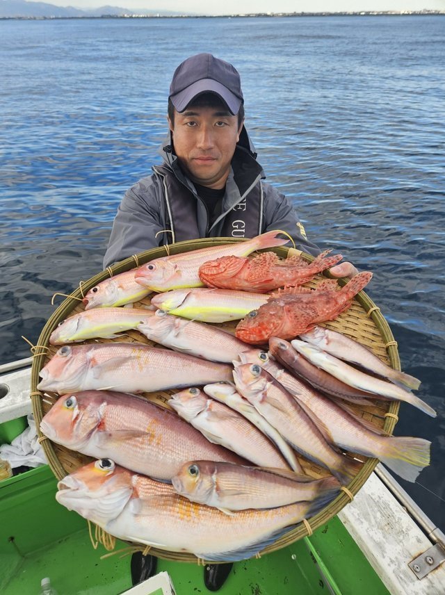 ・朝は潮が少し早く、アタリが出てもなかなか針がかりしなかったり、途中潮が止まってしまい餌取りの猛攻にあったりと。コロコロと様子を変える海でしたが、皆様潮の変化にも対応されてなんとかアマダイを拾うことが出来ました。