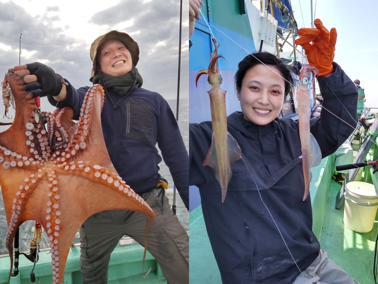 仙昇丸の釣行ではマダコ・イカ・マダイ・ヒラメといった多様な魚種が狙えます。